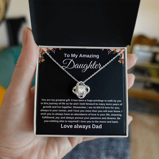 To My Amazing Daughter | Black and White | Love Knot Necklace | Gift for Daughter